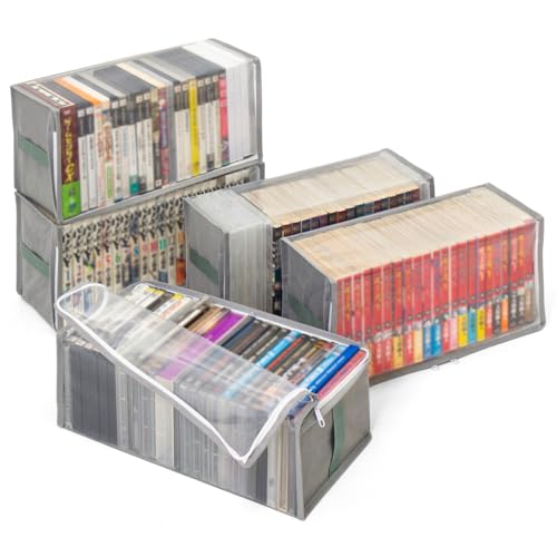 アストロのコミック収納ケース5個組は、B6判サイズの漫画やDVDを整理整頓可能。通気性の良い不織布でホコリから保護、透明窓で中身が見え、三方開きで出し入れしやすい。持ち手付きで、カラーボックスやクローゼットに最適。