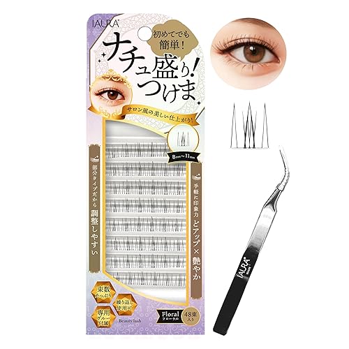 IAURA ビューティラッシュ ナチュ盛り!つけま Floral フローラル(48束入り) ピンセット 専用グルー付 くり返し使用可 束数たっぷり 極細軽量 防水 部分まつげの高価買取