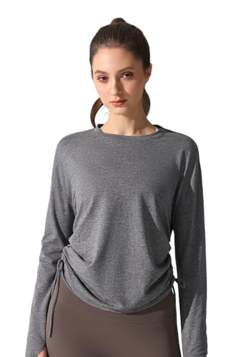 [MORGEN SKY] ヨガウェア レディース 長袖 トップス アクティブシャツ サイドプリーツ スポーツウェア 丸首 Tシャツ 快適 無地 ロングスリーブ プルオーバー ストレッチ フィットネス CX422 (JP, アルファベット, M, グレー)の高価買取ITEM