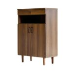 ワイドFAX台は、電話台やルーター収納として使える木製キャビネット。シンプルでモダンなデザインはリビングやオフィスに最適。コード整理や収納に便利な扉付き、引き出し付き。組み立て式でブラウンの仕上げ。
