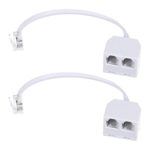 双方向電話回線スプリッター Rj11 オス-デュアルメスケーブル 6p4c 電話スプリッター 固定電話用スプリッター 電話、ファックス機、ホワイト 2個パック