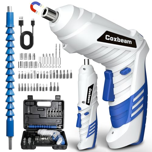 小型電動ドライバーは正逆転切替が可能で、電動ドリルとしても使用可。大容量バッテリー、変形可能なビット45点セット付き。USB充電式、強磁気で携帯便利。初めての方にも操作簡単、収納ケースあり。