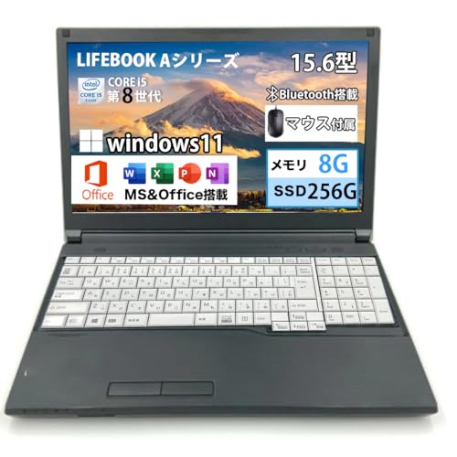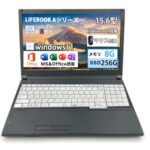 富士通のLIFEBOOK Aシリーズは、15.6型ディスプレイ搭載のノートPC。第7世代Core i3、メモリ4GB、SSD128GBを備え、Windows11とOffice 2019がインストール済み。WIFI、Bluetooth、DVDドライブ、マウスも付属。