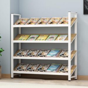 QD-WST マガジンラック 雑誌ラック カタログラック カタログスタンド スチールラック パンフレットスタンド 展示会 待合室 図書館 新聞ラック (ホワイト(幅120cm×奥行き30cm×高さ120cm))