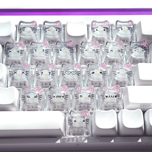 猫のシルエットデザインのキーキャップ21ピースセット。透明素材で夜間照明対応、人間工学に基づいたタイピングが可能。かわいいアニメスタイルのキーボードアクセサリーです。