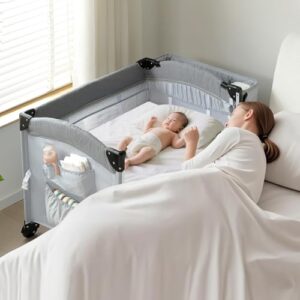 Kennkari ベビーベッド ベビーサークル 折りたたみ 添い寝ベッド プレイヤード サイド高さ調整可能 お昼寝マット キャリーバッグ付 マットレス付 おむつ替えテーブル付き キャスター付き 多機能 出産祝 軽量 (A型二段調整(89cmの長さ)ライトグレー)