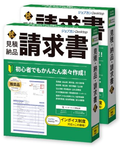 ジョブカンDesktopは、見積・納品・請求書の作成をサポートするソフトです。建築やサービス業向けに対応し、原価計算やインボイス機能も備えています。ひとり親方や工務店、製造業など多様な業種に適した2個パックのパッケージ版。