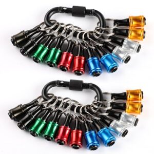 ポータブルビットホルダーキーホルダー24個、1/4インチ六角シャンクドライバービットクリップインパクトドライバー用フレキシブルドリルビット延長ナットドライバー、ブラックカラビナ付き、クイックリリース軽量ドリルねじアダプター。