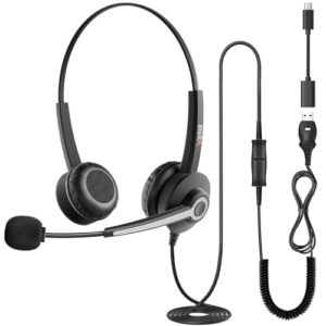 Wantek ヘッドセット USB Type-C 両耳 ヘッドホン 有線 ノイズキャンセリングマイク付き Web会議、Zoom/Skype、ビジネス、オフィス、在宅勤務、業務用、リモートワーク、オンライン授業・学習に適用 クリアな通話 スマホ Mac PC対応 超軽量 超快適 耳が痛くない【適格請求書発行対象】