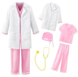 [ReliBeauty] お医者さんごっこ 子供用白衣 キッズ コスチューム 衣装 ハロウィン 仮装 子供 男の子 女の子 ドクター コスプレ なりきり 聴診器付 5点セット ピンク 150