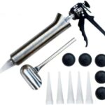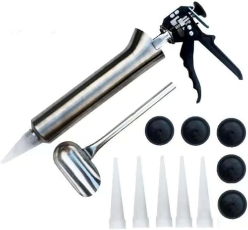 Poixmoc ステンレス鋼ハンドコーキングガン モルタルアプリケーター ノズル付き ステンレススクープ付属 グラウトツール 壁補修/タイル隙間埋め用 DIY/プロ向き (一発5口1さじ5ピッセ+プレスボールです)の高価買取ITEM