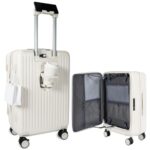 J.K.Tの軽量フロントオープンスーツケースは、Sサイズで機内持ち込み可。拡張機能、着脱式仕切り、USB充電機能、TSAロックを搭載し、大容量で静音ダブルキャスター。1~3泊向けの短期旅行に最適。