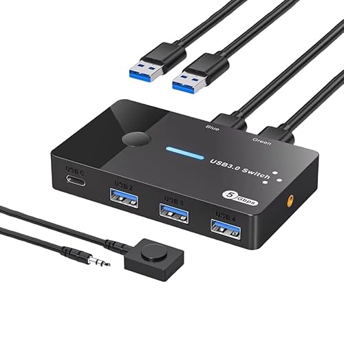 JSDNGURK USB3.0スイッチマウスシェアラーは、2入力4出力のKVMスイッチで、ノートパソコンとUSB3.0/Type-Cデバイスを共有。マウス、キーボード、プリンターに対応。