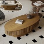 FGXJYの楕円形コーヒーテーブルは、収納付きのモダンデザイン。ウォールナットの無垢材ベニヤ使用で、長さ47.2インチ、幅23.6インチ、高さ14.2インチのサイズです。