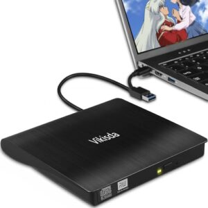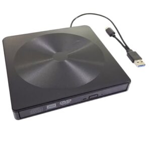 LLMHHKYK 外付けCD/DVDドライブ ノートパソコン用 USB 3.0 & Type-C CDバーナー ポータブルDVDプレーヤー スリム外付け光学ドライブ プラグアンドプレイ CD/DVD RW PC Mac Linux対応 (2イン1ブラック)