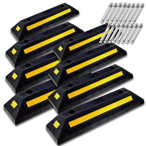 パーキングブロック 車輪止め 4面反射板付き 車止め カーストッパー タイヤ止め 駐車場 輪止め タイヤブロック 車庫 駐車 ガレージ パーキング 固定アンカー付き (8本セット)