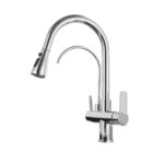 Tomeka引き出し式キッチン蛇口は、冷水・温水・浄水に対応。回転シャワー・水流切替が可能で、セラミックバルブ採用。省スペースでメンテナンス簡単、クロムメッキ/マットブラック仕上げのスタイリッシュなデザインが魅力です。