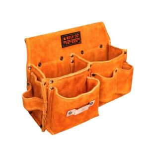 YQW 腰袋 ツールウエストポケット 牛革製 4層 仕切り付き 着脱式腰袋 コンパクト 耐摩耗性 木工 建築現場 設置 メンテナンス 小物入れ 多機能ポケット 木工ツールキット 作業用/アウトドアに最適 (A)