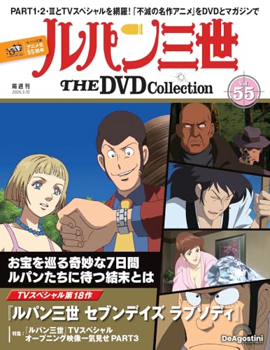 ルパン三世 THE DVDコレクション 第55号は、TVスペシャル第18作「ルパン三世 セブンデイズ ラプソディ」を収録。DVD付きの分冊百科形式で、ルパンファン必携のアイテムです。