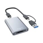 ポータブル USB Type-C 3.2 CFE B メモリカードリーダー。金属構造で耐久性に優れ、高速データ転送が可能。ラップトップやタブレットで便利に使用できます。