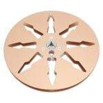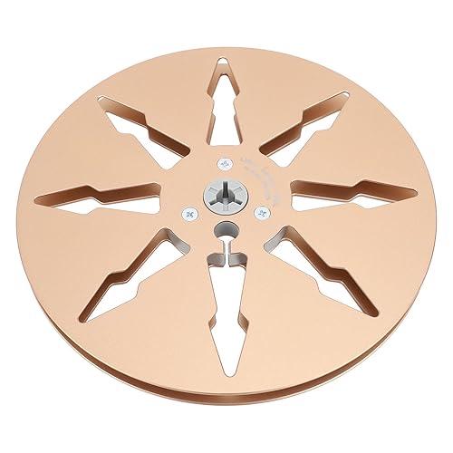 1/4インチの頑丈なアルミニウム合金製8穴空テープリール。耐久性が高く、リールツー愛好家に最適です。金色の仕上げが特徴。