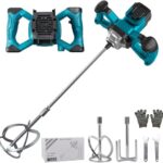 充電式コンクリートミキサーは980Wのブラシレスモータ搭載。6速調整可能で120-680RPMの回転数。操作・取り付け簡単。18Vバッテリー使用、マキタ対応。コンクリートやモルタルの混練に最適。バッテリー・充電器は別売り。