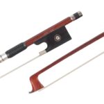 4/4 バイオリン用カーボンファイバー弓。ブラジリアンウッドのベニヤを使用したラウンドスティックで、銀線ラップが施されています。優れたパフォーマンスを実現する一品です。