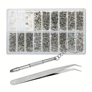 Anesoli メガネ修理ツールキット1000個のメガネネジとナットの品揃え、ミニドライバーとピンセットネジ修理キット