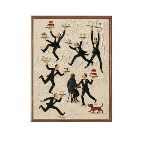 面白いキッチンウォールアートポスター。食べ物や飲み物をテーマにしたヴィンテージ風の油絵プリント。サイズは30.5cmx40.64cm、フレームなし。トレンディなキッチンやコーヒーバーに最適なレトロな壁装飾。