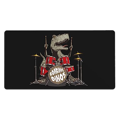 大型ドラムセット恐竜デザインのゲーミングマウスパッド。サイズは40cm x 75cmで、ゴム底のおしゃれな防水仕様。滑り止めで耐久性があり、オフィスやサイバーカフェに最適。