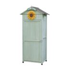 haoyunjianjiakの屋外大型倉庫は、65*45.5*174cmのサイズで頑丈な無垢材を使用。防水・耐侯性があり、大容量収納が可能。転倒防止設計でガーデンや農場に最適。