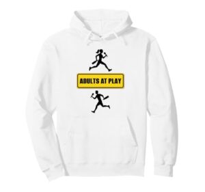 大人用 at Play 黄色い道路標識 男性 女性 ジョギング ワイングラス パーカー