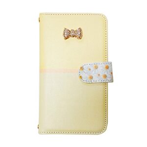 らくらくスマートフォン F-52B (4) ラクラク スマホ スマホケース 全機種対応 携帯ケース 手帳型[カード収納/スタンド機能/全面保護/耐衝撃]プレゼント 人気 おしゃれ かわいい リボン 花柄 バイカラー diary-anita (ベビーイエロー)