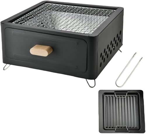 無煙設計の卓上囲炉裏です。炭火焼きバーベキューコンロは2-4人用で、屋内外兼用。キャンプや家庭で、串焼き・グリル・暖房としても多用途でコンパクトなデザイン(ブラック)です。
