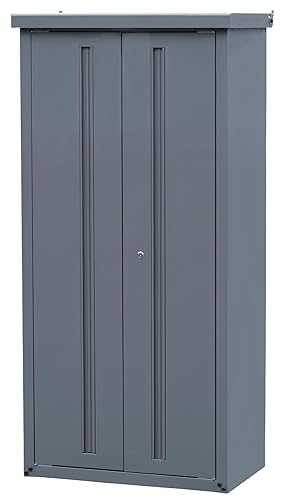 物置屋外収納庫ISM-750は、幅75×奥行45×高さ162cmの大型ロッカーです。縦長デザインで両開き、鍵付きでセキュリティも安心。可動棚板付きで多用途に対応。限定グレー色がスタイリッシュです。