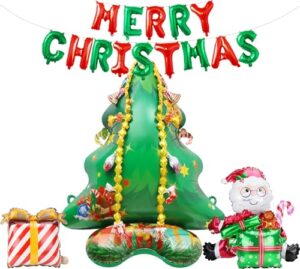 Chisafly クリスマス バルーン クリスマスパーティー ガーランド 飾り 風船 自立 5点セット 高さ約124㎝ おしゃれ 大きい アルミ パーティーグッズ デコレーション クリスマスツリー サンタ 玄関 店頭 写真道具