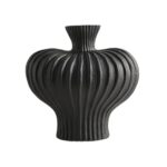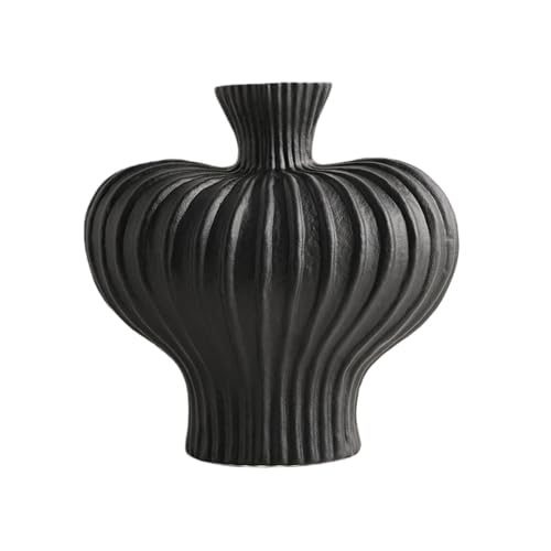 侘び寂びスタイルの陶器の花瓶。シンプルで美しいデザインはリビングルームやホテル、ショールームに最適。装飾品やデコレーションとしても活躍し、花器としても重宝します。サイズ:L、カラー:ブラック。