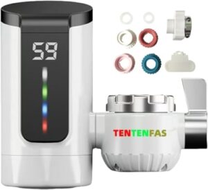 Fiegcit 電気給湯器温水蛇口インスタント電気温水器タンクレス給湯器のシャワー蛇口温水と冷水二重目的、3秒速度加熱360°回転水道管3000W LCDディスプレイ温度、過熱保護 水温30℃〜60℃調節可能IPX4防水設計 浴室用