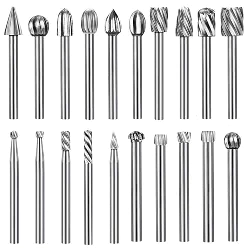 超硬バー リューター ビットは、高速度鋼製で耐久性が高く、木工彫刻やプラスチック加工に最適です。3mmサイズのビットが20本セットで、切削や研磨に便利な木工ツールです。