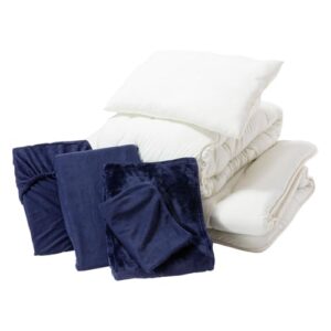 布団8点セット 届いたらすぐに使える (組布団/ネイビー)掛布団 敷布団 毛布 まくら 掛布団カバー ワンタッチシーツ 枕カバー フリース素材 収納袋付き 新生活 1人暮らし 客間用