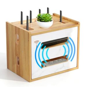 OVECIOPO(オベシオポ) ルーターシェルフ 壁マウント WiFiルーターボックス ハイダーモデムカバー ケーブル管理付き 電源タップオーガナイザー 収納ボックス 複数のケーブル穴(ブラウン、特大)