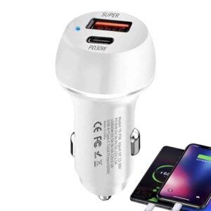 車の充電器アダプター、自動車電話の充電器 – 2ポート急速車載充電器 – 60W USB カーチャージャー PD 急速充電カーチャージャー Type-C USB 充電器 ゲームコンソール用