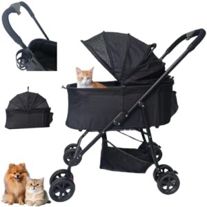 Fantoxcyペットカート、犬 カート、小型・中型犬に適し、猫にも適し、取り外し可能、軽量、20kg、取り外し可能な4輪PU耐摩耗性ホイール、コンパクトな多頭飼いベビーカー、360度回転、後輪ブレーキ、ワンボタン開閉、お手入れ簡単、ワンボタン折りたたみ、収納簡単、犬用ベビーカー、2秒折りたたみ、組み立て簡単、持ち運び簡単、カップホルダーフック付きで外出簡単 (黒)