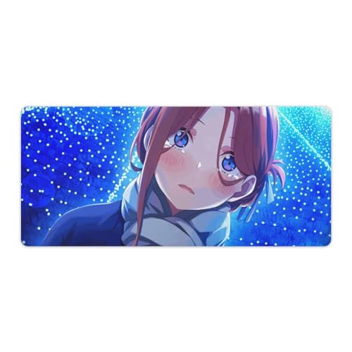 五等分の花嫁の中野三玖デザインのマウスパッド。耐久性のあるレザー製で、滑り止めゴム底付き。サイズは40x75cm、おしゃれで可愛いデスクパッドとして、オフィスや自宅で使えます。