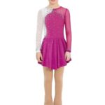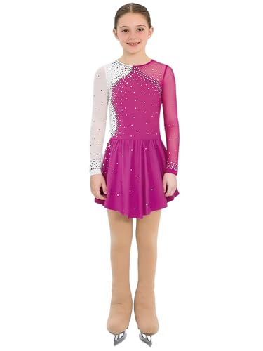 子供用の女の子向けフィギュアスケートコスチューム。長袖ダンスドレス、足付きタイツ、ブーツを覆うズボンセット。華やかな薔薇デザインで、13-14歳向けのサイズです。
