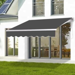 オーニングテント 手動格納式オーニング つっぱり日よけスクリーン 防雨 バルコニー サンシェー2m/2.5m/3m/3.5m/4m 巻き取り式 防水 格納式 日除け 雨よけ 屋根オーニングテント ひさし 屋根パティオ、中庭、バルコニー、住宅用 レストラン壁際オグテント (ダークグレー, 200*150CM)