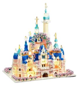 Sailozaiレゴブロック、小粒、プリンセスドリームキャッスル建築、女の子知育パッチワークおもちゃ、ミニダイヤモンド子供パズルDIYおもちゃプレゼント (ディーニ城3600顆粒+ランプ+カバー+工具,春金)