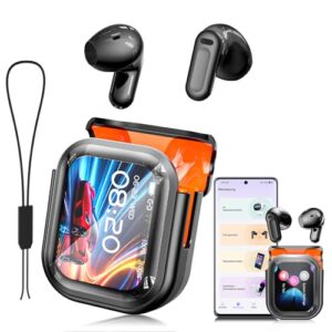 Wuyuzi タッチスクリーン充電ケース付きワイヤレスイヤフォン、リアルタイム翻訳ヘッドフォン、出張用 AI 搭載ーフック、スポーツゲームモードヘッドセット (白)