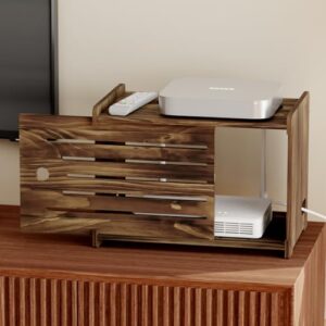HAIDAIYA 木製WiFiルーター収納ボックス隠し棚、装飾プロジェクターボックスハイダーラックカウンタートップ、ケーブル、モデム、インターネット、ルーター電源カバーストレージオーガナイザーキャビネット壁取り付け、ブラウン