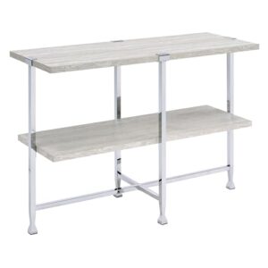 HXUHUWS ソファテーブル 棚1つ付き 丈夫な紙ベニヤと金属チューブ脚 モダンデザイン ホワイトオーク仕上げ